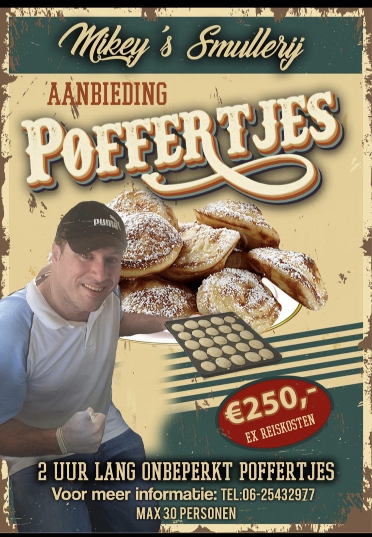 Heerlijk verse poffertjes, ter plekke voor u gebakken in onze Stitch‑foodtruck.